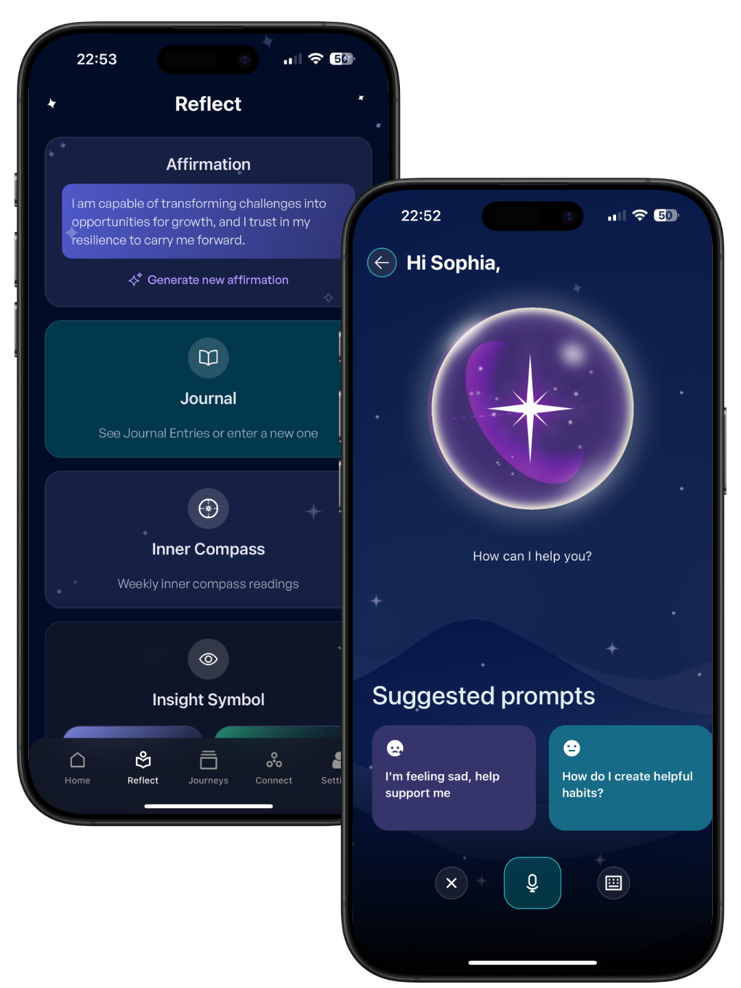 Speak or type. Aki listens with empathy and gently responds with questions, reflections, and insight.